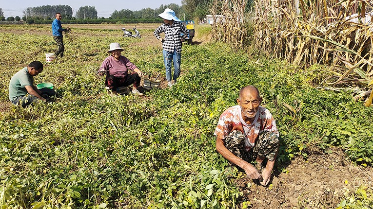 “我家今年种了4亩多花生,差不多能打花生2千多斤,争取早点收完卖个好价钱”马楼乡永乐村村民满脸喜悦的说。